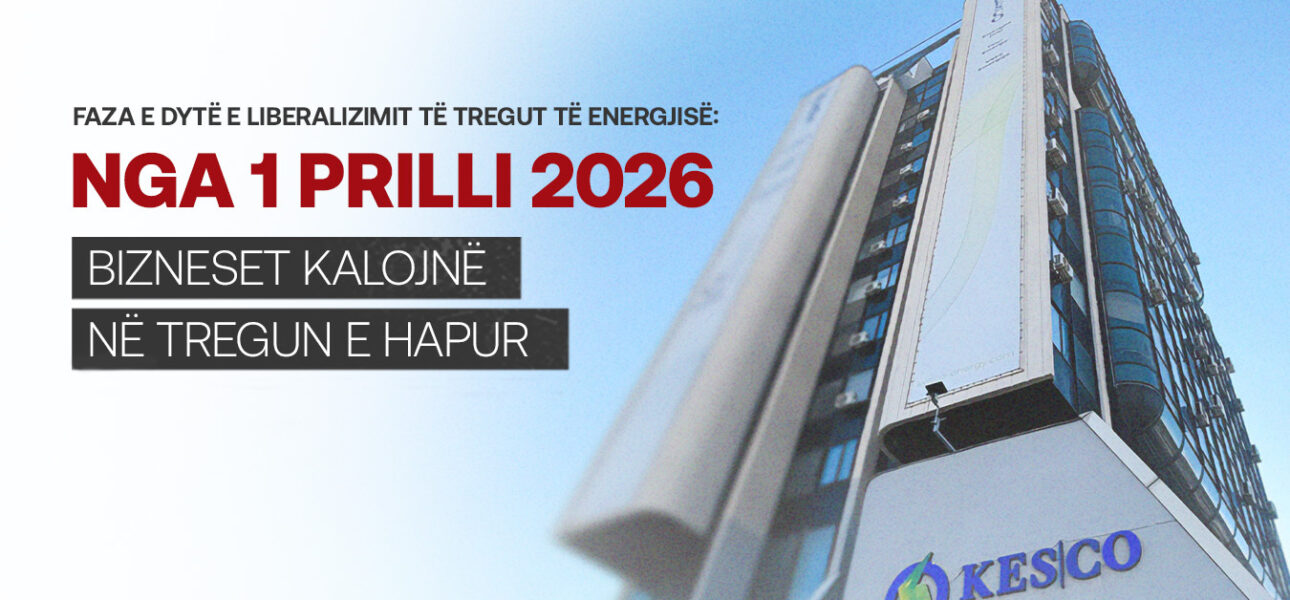 KESCO, në cilësinë e Furnizuesit të Shërbimit Universal, njofton se në përputhje me Ligjin për Energjinë Elektrike dhe me kërkesë të Zyrës së Rregullatorit për Energji (ZRrE), nga data 1 prill 2026 do të vazhdojë faza e dytë e daljes së konsumatorëve komercialë në tregun e hapur.
